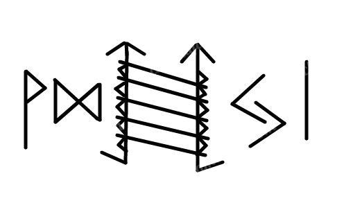 Перто зп + Иса + Перто + Иса + 2 Альгиз пп - две "Печати Хель" прямая и зеркальная - полное и комлексное угасание отношений, уход в небытие, прошлое умирает и выбрасывается как ненужное, будущее даже не имеет возможности родиться, уничтожение защиты отношений, какая бы защита не была, она рушится из-за уничтожения ее функций и того, за что она держится, космическая и кармическая смерть отношений и связей.